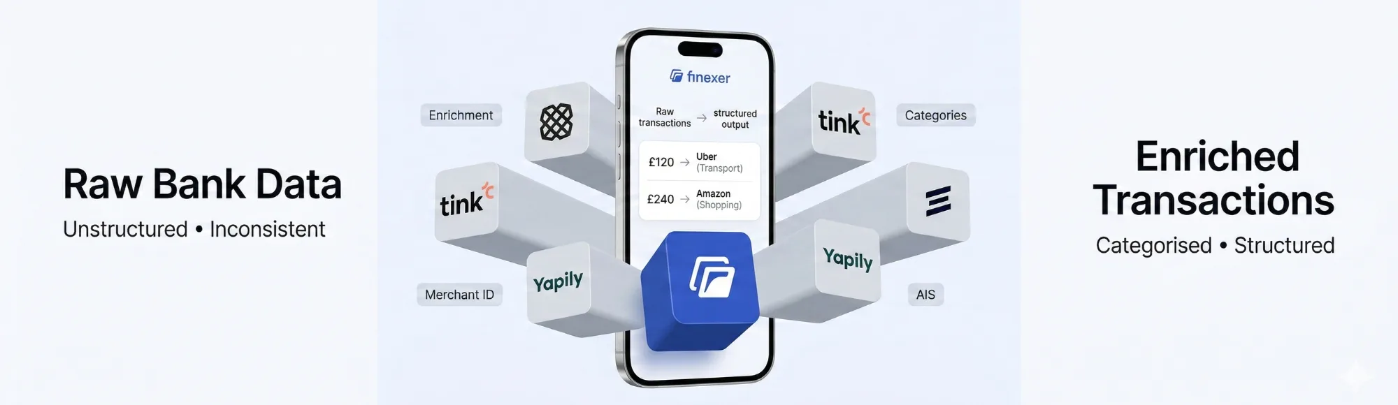 Finexer provides financial data infrastructure tailored to UK platforms requiring transaction enrichment inside regulated workflows.